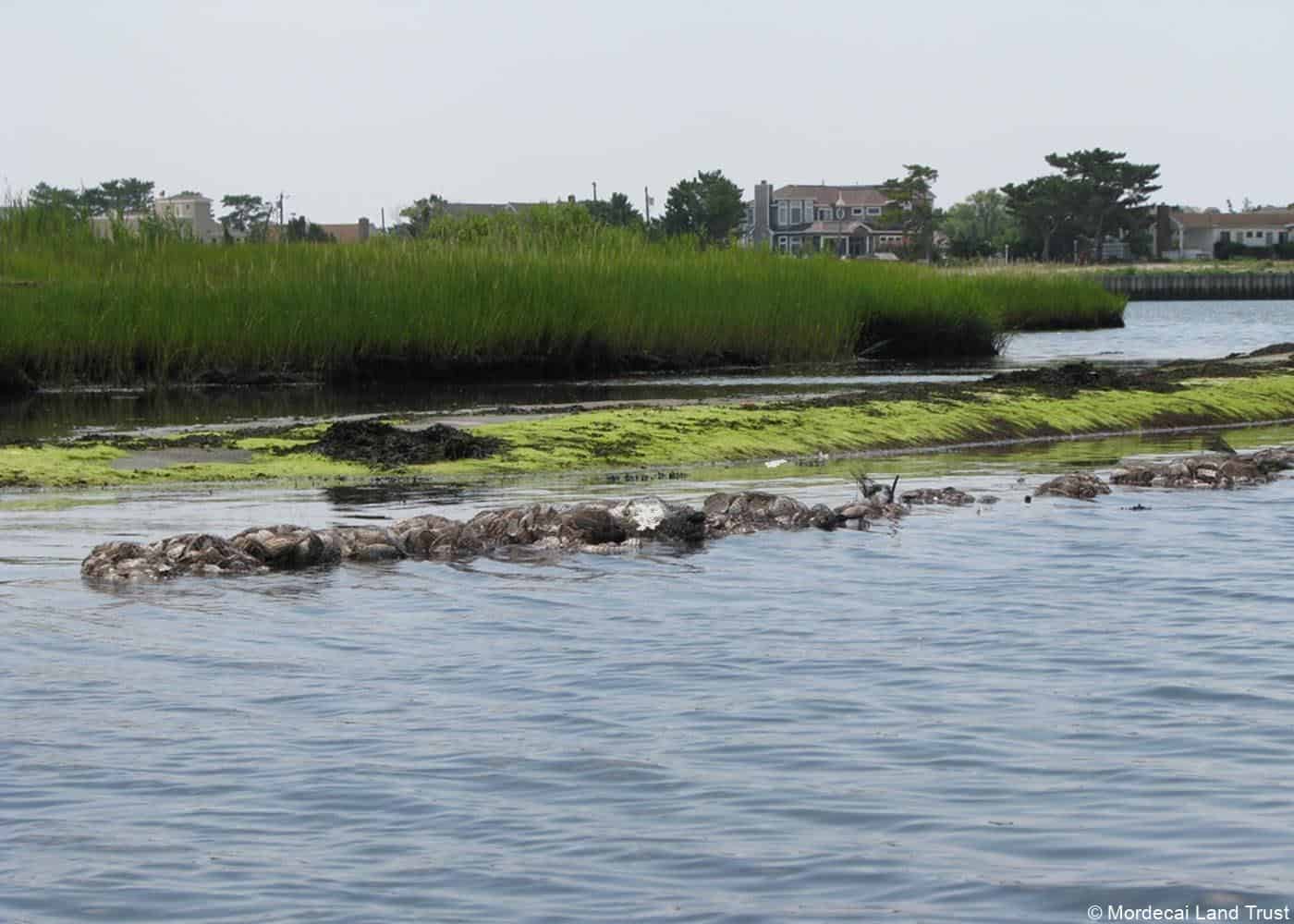 2020 Status: Substantial new sand accretion continues to occur on the east side of the Geotubes. Ribbed mussel and new shoots of Spartina alterniflora growth continues along the embankments that are parallel to the tubes. Submerged aquatic vegetation is growing on the west side of the tubes, with floating bladder wrack on the top of the tubes.