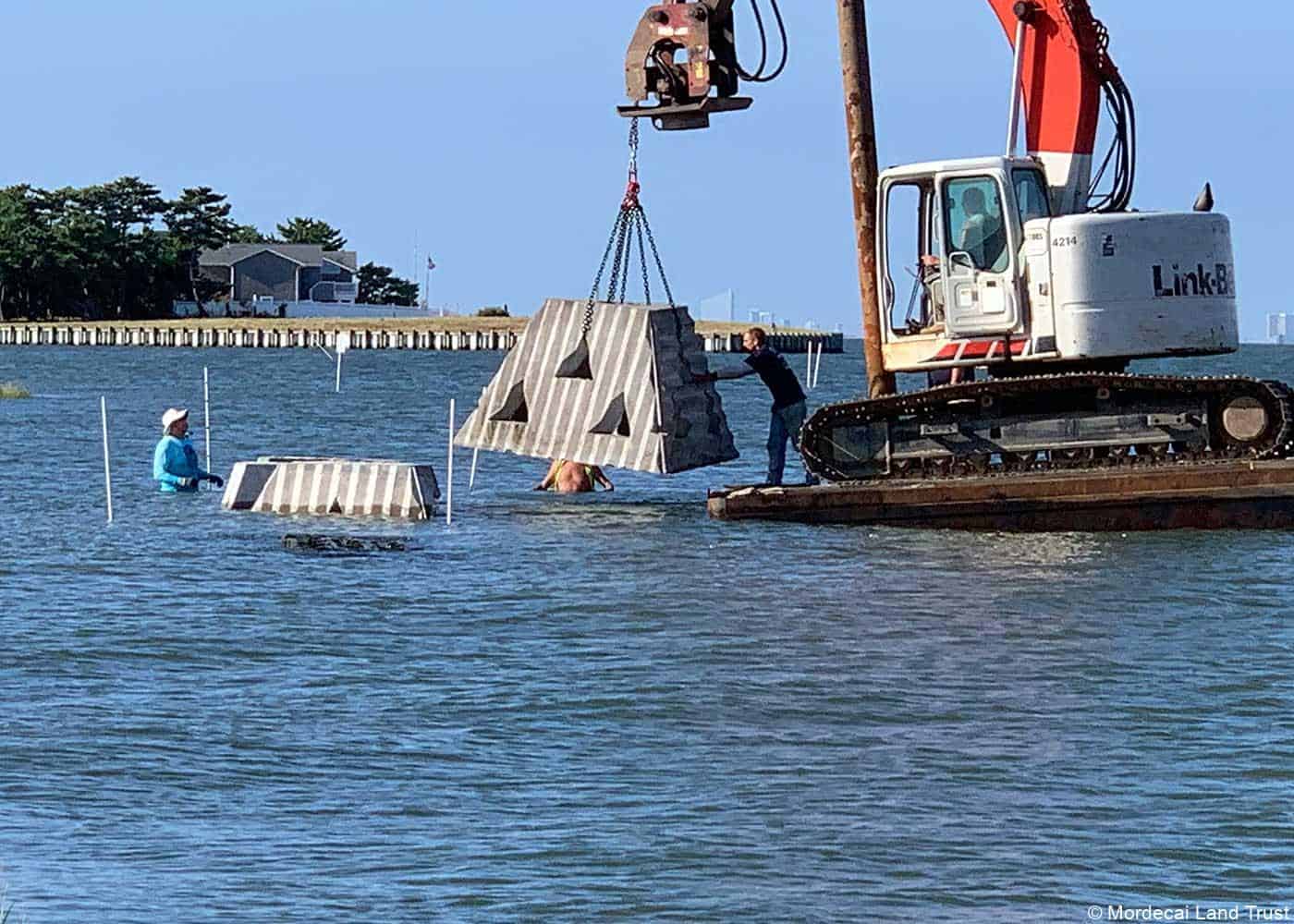 Status: Five new breakwater structures that were transported by barge and then installed along the south west section of Mordecai.